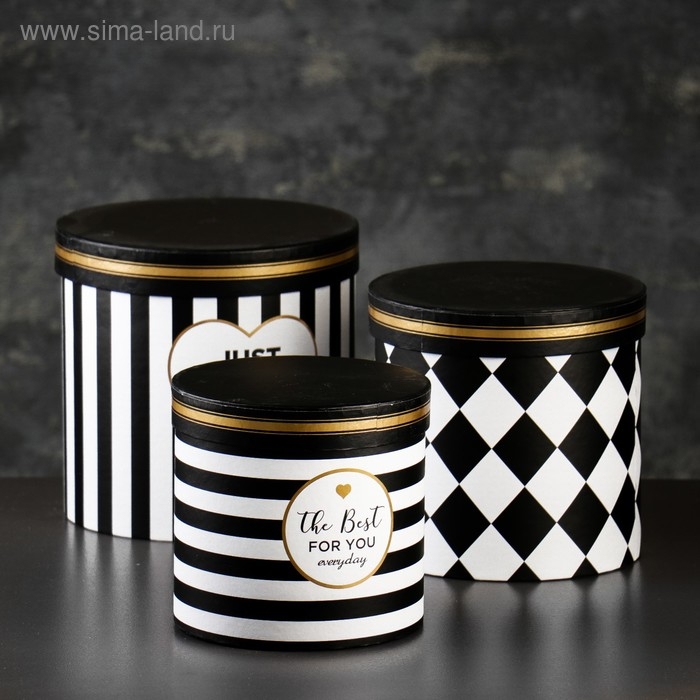 Набор коробок 3 в 1, черный, 19,5 х 19,5 х 19 - 15,5 х 15,5 х 15 см