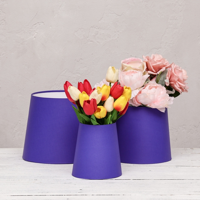 Набор коробок 3 в 1 Обратный конус "Фиалка",фиолетовый без крышек 20*19,5*24-10,5*15*14,5