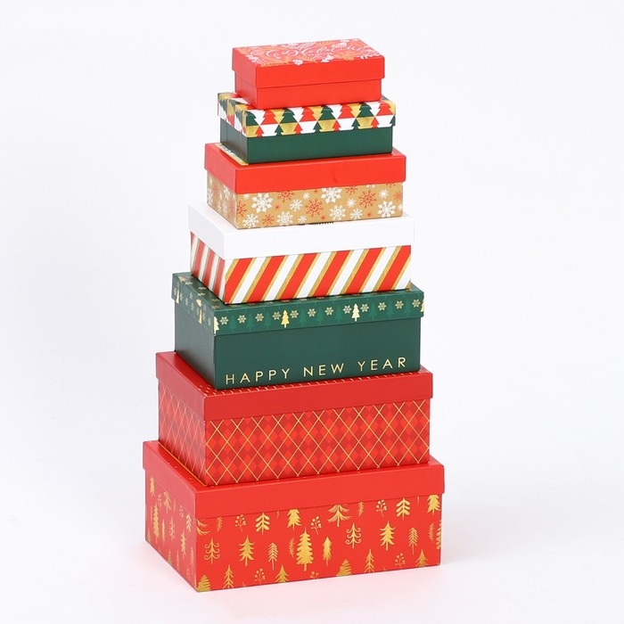 Набор коробок подарочных 15 в 1 «С Новым годом», 12 х 7 х 4 см - 46,6 х 35,2 х 17.5 см, Новый год