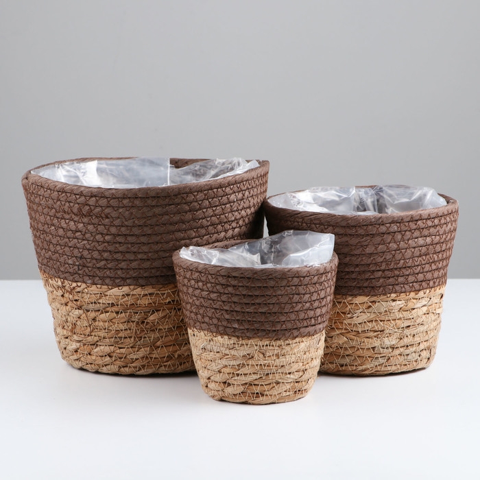 Набор корзин из 3 шт, D20xH16, D16xH15, D12xH11 см, рогоз