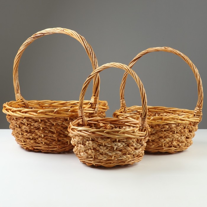 Набор корзин плетеных, 33х33х13/36 см, 28х28х11/31 см, 22х22х10/26 см, 3 шт, ива