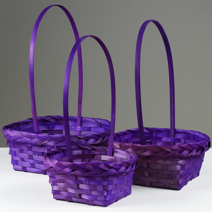 Набор корзин плетеных, D19x9/32 см, D22x9,5/34 см, D25x10/36 см, 3шт, фиолетовые, бамбук