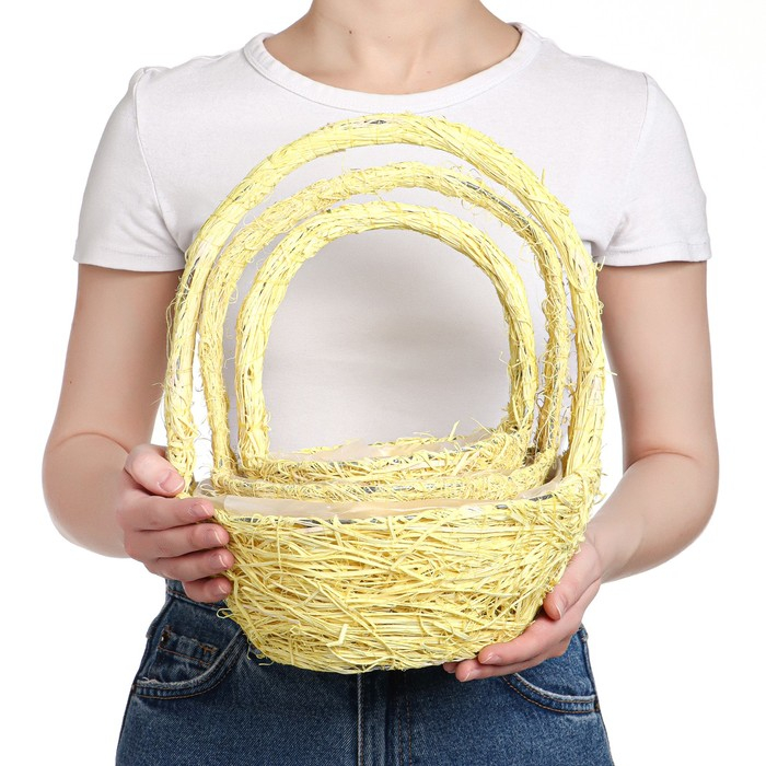 Набор корзин «Солнышко», 3 шт, 25×10/32 см, 20×9/28 см, 17×8/23 см, ротанг, сизаль