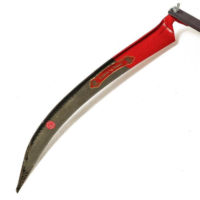 - Коса «Сайга-люкс» (длина лезвия 70 см). Она подходит для скашивания травы и злаковых культур.