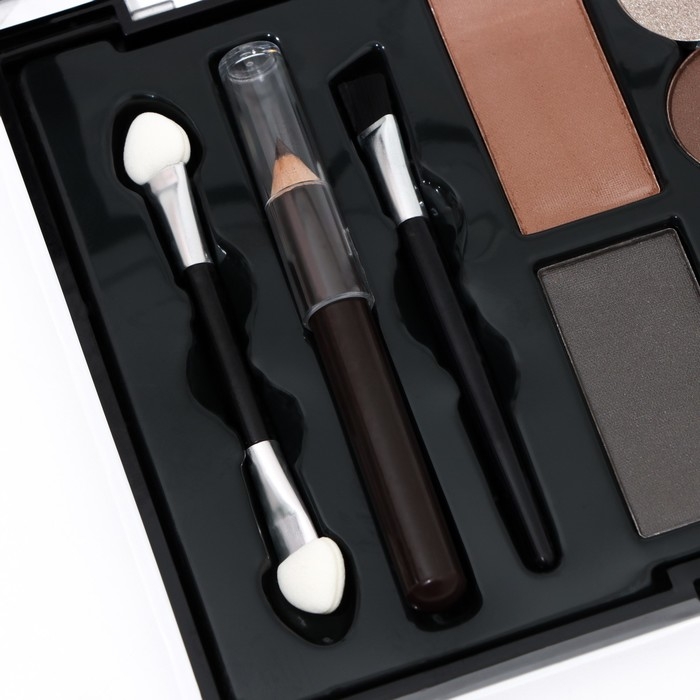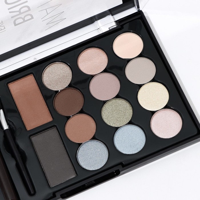 В палитре теней также представлены тени для бровей. Тени для бровей коричневые идеально подойдут для естественного и аккуратного макияжа бровей. А в комплекте с палеткой вы найдете кисточку для нанесения теней на брови, которая обеспечит вам максимальную точность и профессиональный результат.