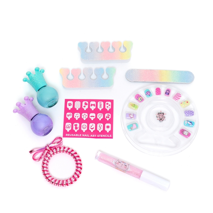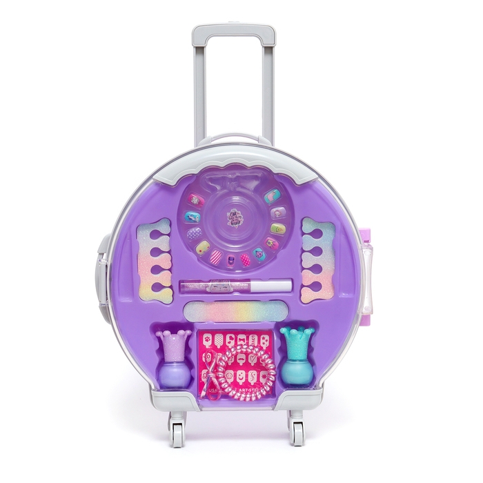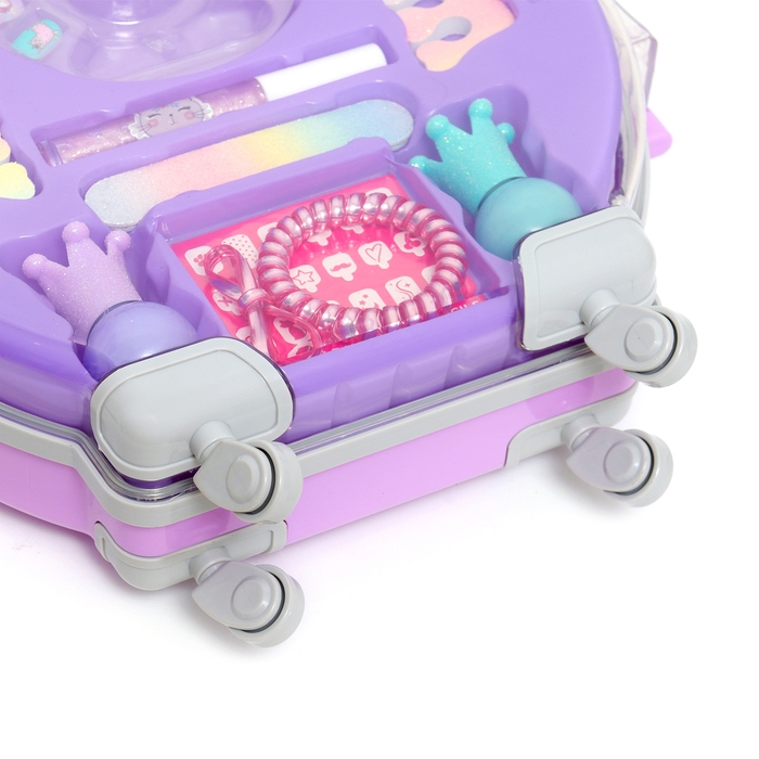 Набор косметики для девочки "Чемодан на колёсах", сиреневый, с накладными ногтями