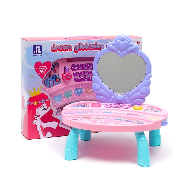 Набор косметики для девочки "Сверкающая мечта", столик с зеркалом