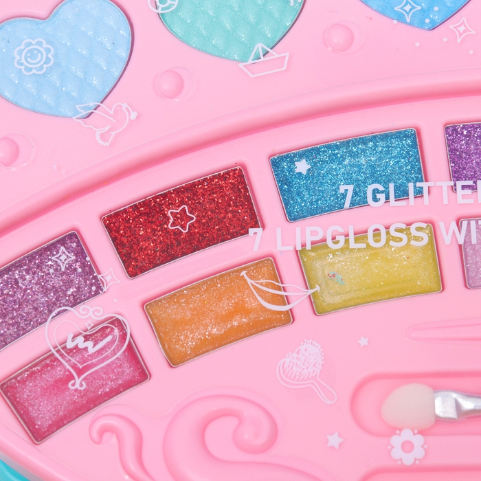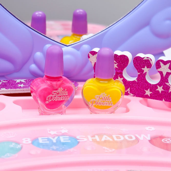 Набор косметики для девочки "Сверкающая мечта" с волшебным столиком, оборудованным зеркалом, предоставляет увлекательные возможности для творчества и игр. В этот волшебный набор входит:
