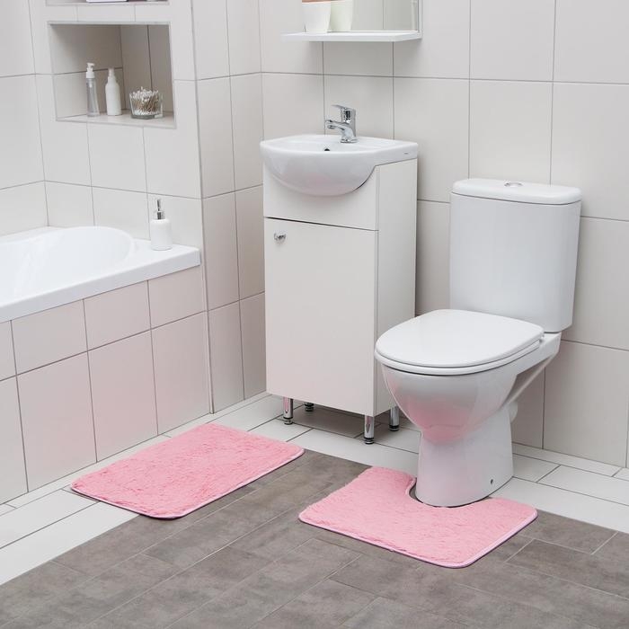 Набор ковриков для ванной и туалета Доляна «Пушистик», 2 шт, 38×40, 40×60 см, цвет розовый