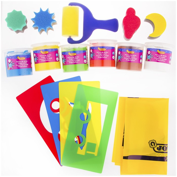 Набор красок пальчиковых 6 цветов, 750г, JOVI, с аксессуарами, пластиковый контейнер, ДЛЯ МАЛЫШЕЙ
