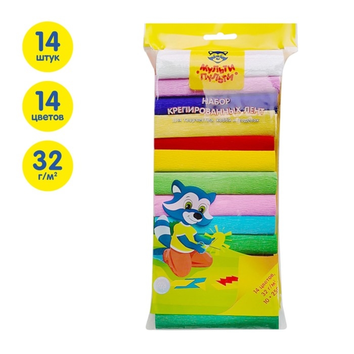 Набор крепированной бумаги 14 цветов Мульти-Пульти, 10 х 250 см, 32г/м2, в рулонах, в пакете