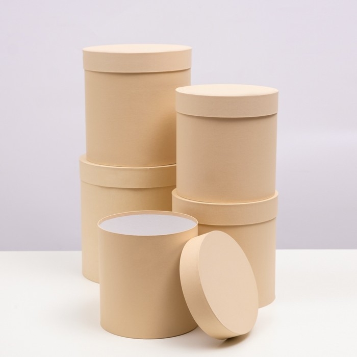 Набор круглых коробок 5 в 1 "Краски", кремовый, 25 х 25 х 25 - 19 х 19 х 19 см