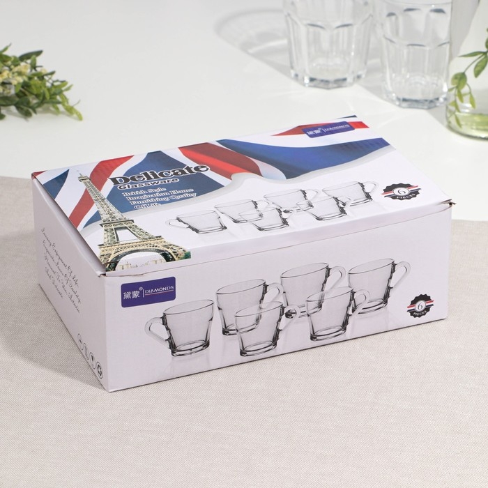 Набор кружек, стеклянный, d=8 см, h=8 см, 190 мл, 6 шт