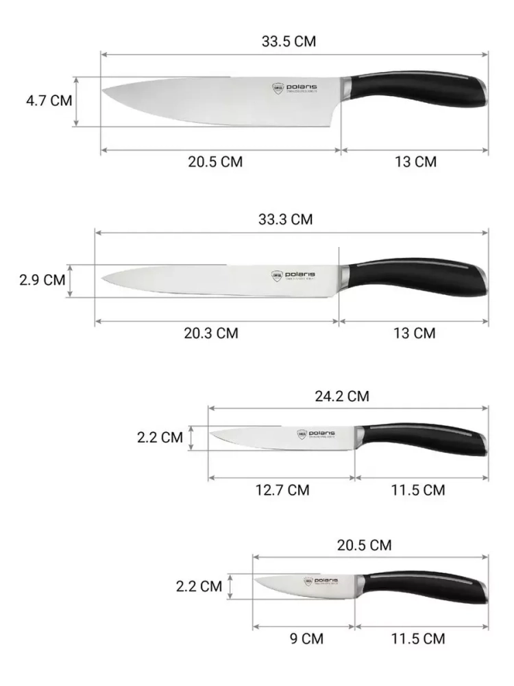 Набор ножей Polaris Stein - 4SS - это выбор профессиональных поваров и любителей кулинарии, которые ценят многофункциональность, высокое качество материалов и безопасность при работе с кухонными инструментами. Комплект состоит из 4-х острых цельнокованых ножей разных форм и размеров, которые помогут вам с легкостью справиться с любой задачей во время приготовления пищи.
