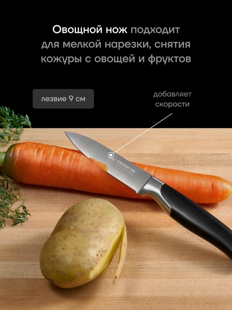 3) Маленький ножик для чистки и резки. Удобен для очистки картофеля, моркови, лука и других овощей.
