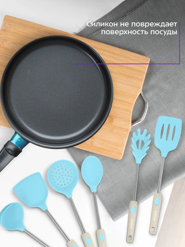 Набор кухонных принадлежностей КТ-1256 безопасен для здоровья и практичен в использовании.