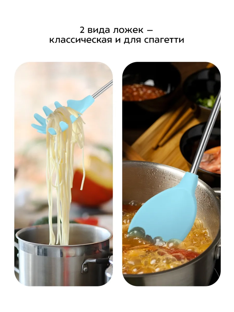Ложкой для спагетти можно извлечь продукты из жидкости. Этой ложкой удобно разделять макароны в процессе варки. Неровный край ложки предотвращает соскальзывание спагетти с ложки, что упрощает процесс подачи блюда.