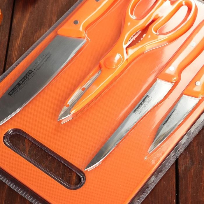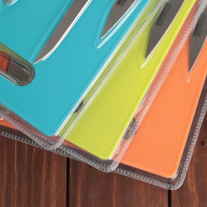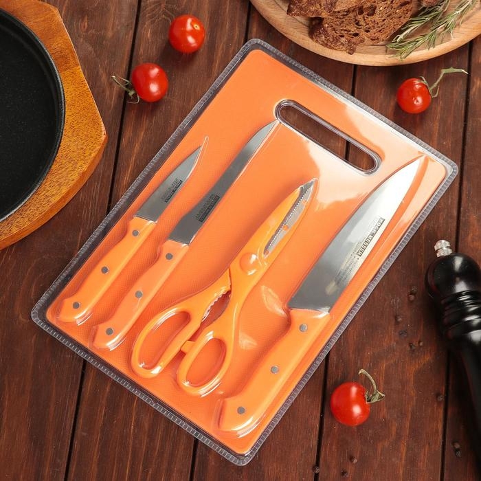 Набор кухонных принадлежностей, 5 предметов: ножи 7,5 см, 12,5 см, 17,5 см, ножницы, доска 29×20 см, цвет МИКС