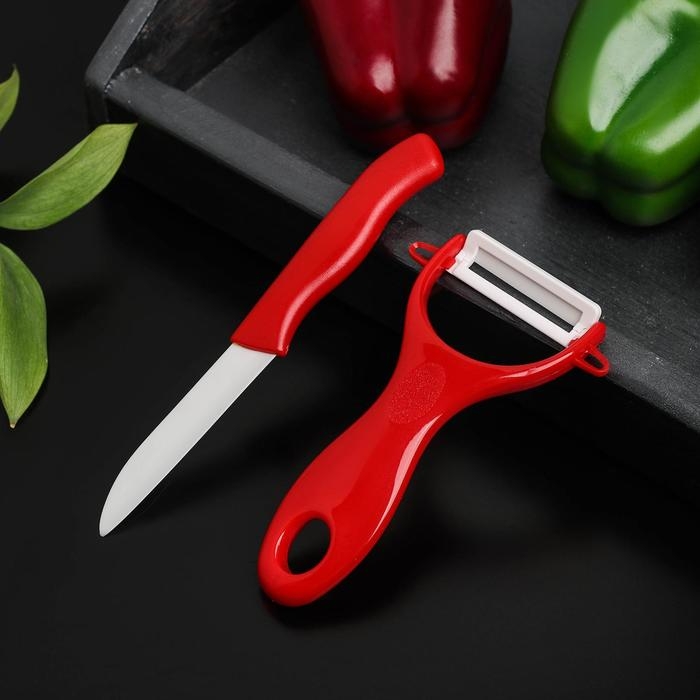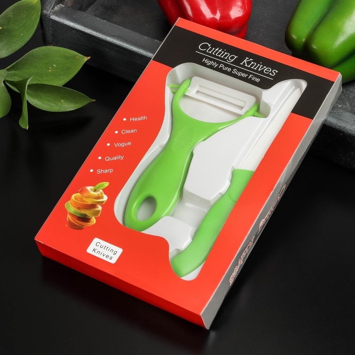 Набор кухонный Доляна, 2 предмета: нож 7 см, овощечистка цвет МИКС