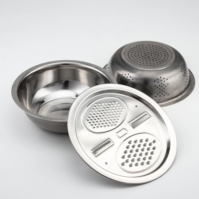 Набор кухонный из нержавеющей стали «Помощник», миска d=26 см, дуршлаг, тёрка