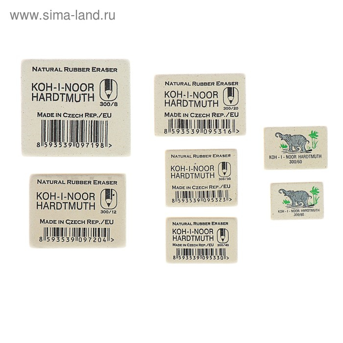 Набор ластиков 7 штук Koh-I-Noor ELEPHANT 300/08-300/80, белые