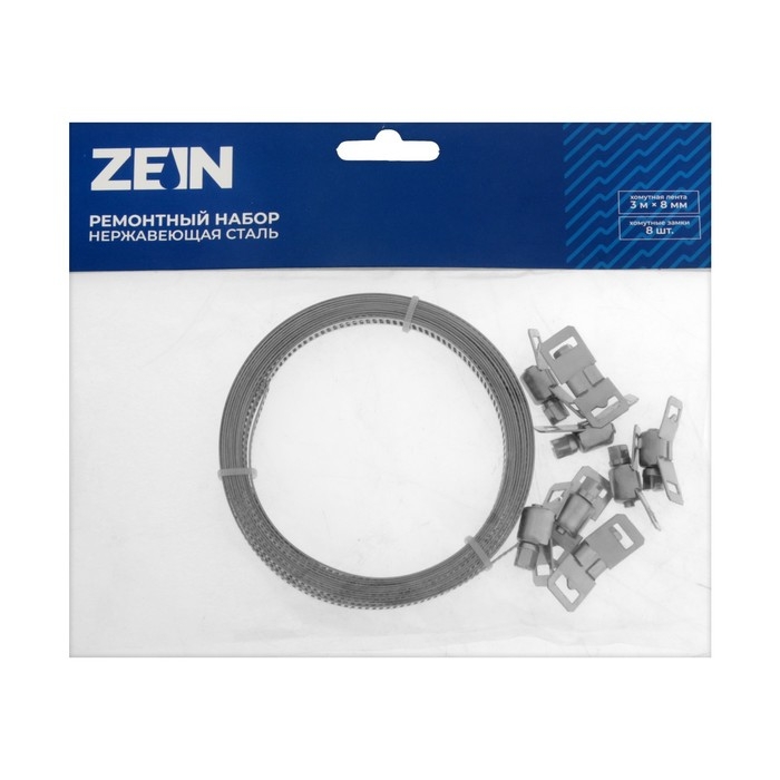 Набор: лента хомутная ZEIN engr, длина 3 м, ширина 8 мм, 8 замков, нержавеющая сталь