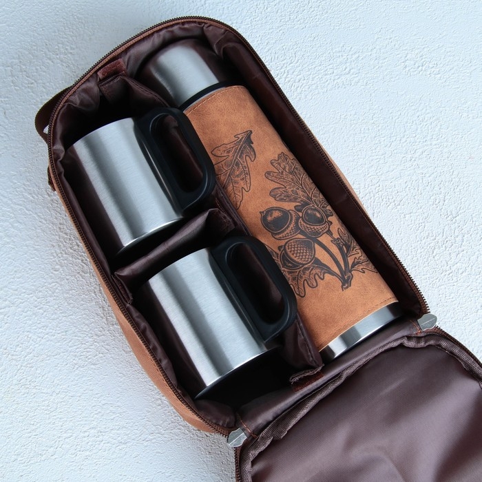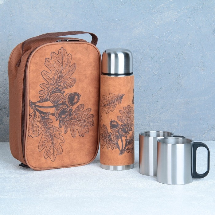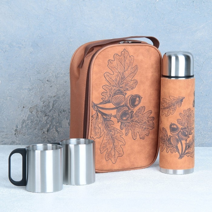 Набор «Листья»: термос 500 мл, кружка 2 шт