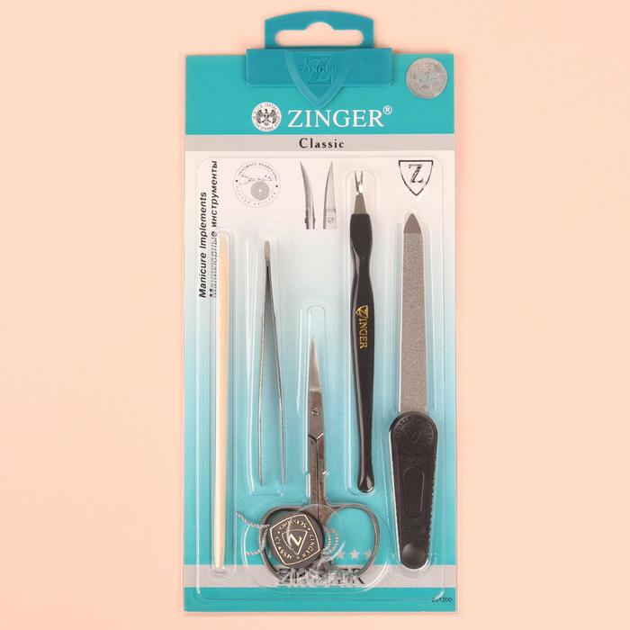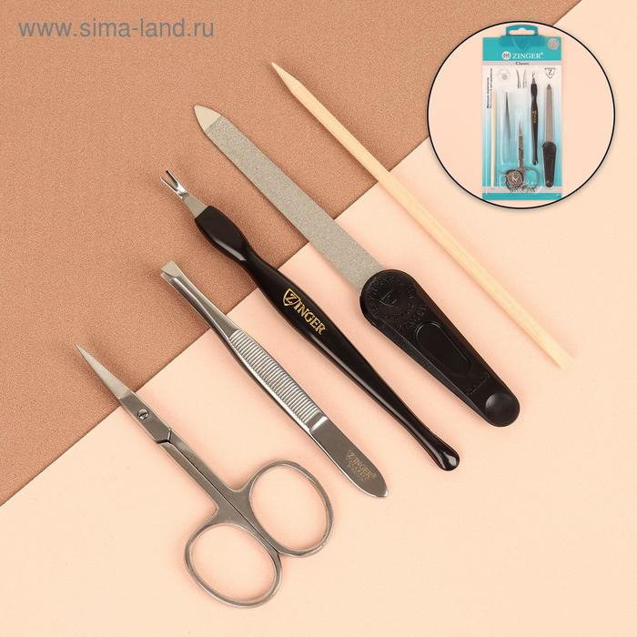 Набор маникюрный, 5 предметов, на блистере, цвет чёрный/серебристый/бежевый, SIS-57