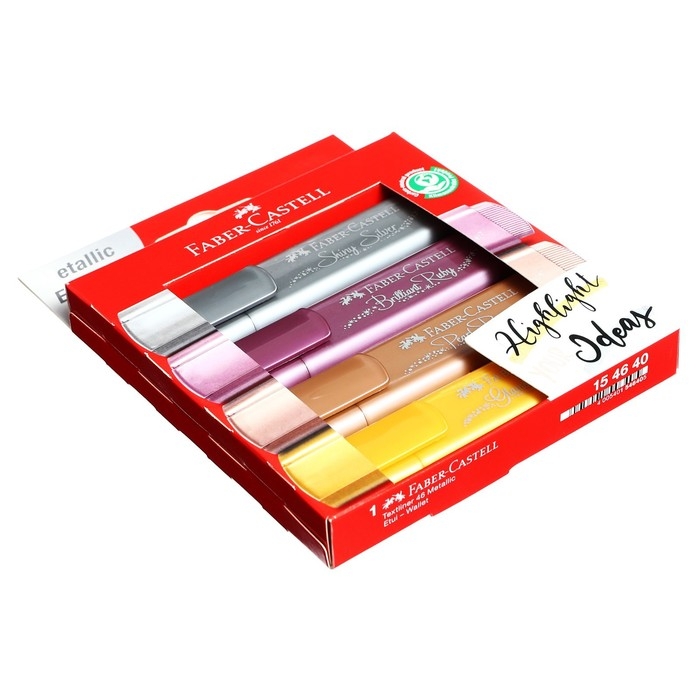 Набор маркеров текстовыделителей Faber-Castell TL 46 Metallic 4 цвета, 5.0 мм, мерцающий металлик, 154640
