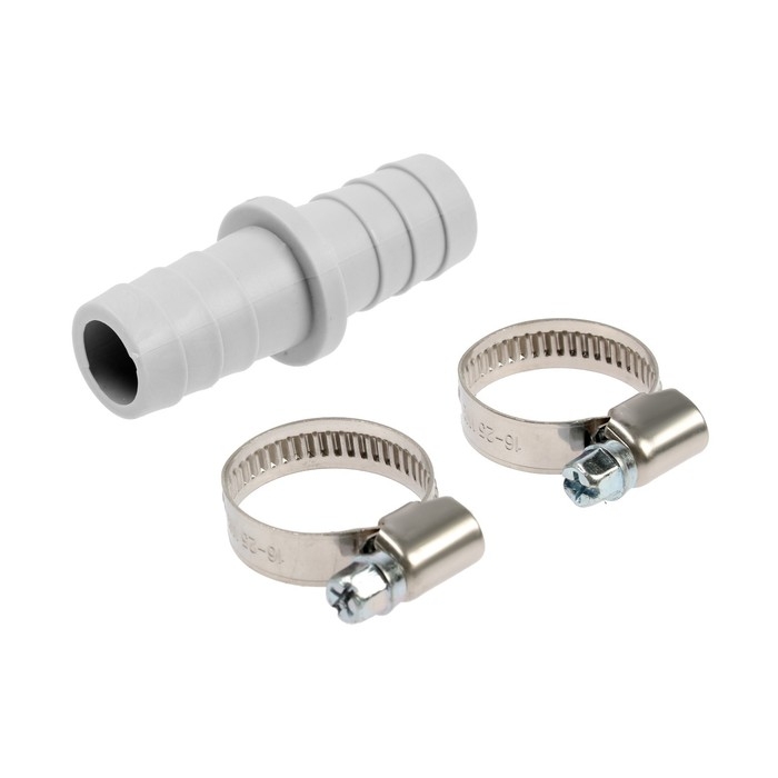 В комплект входят штуцер и два хомута из нержавеющей стали. Они обеспечивают надежное соединение и позволяют избежать протечек.