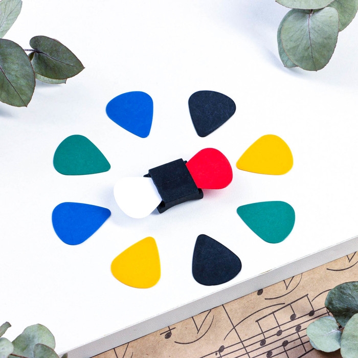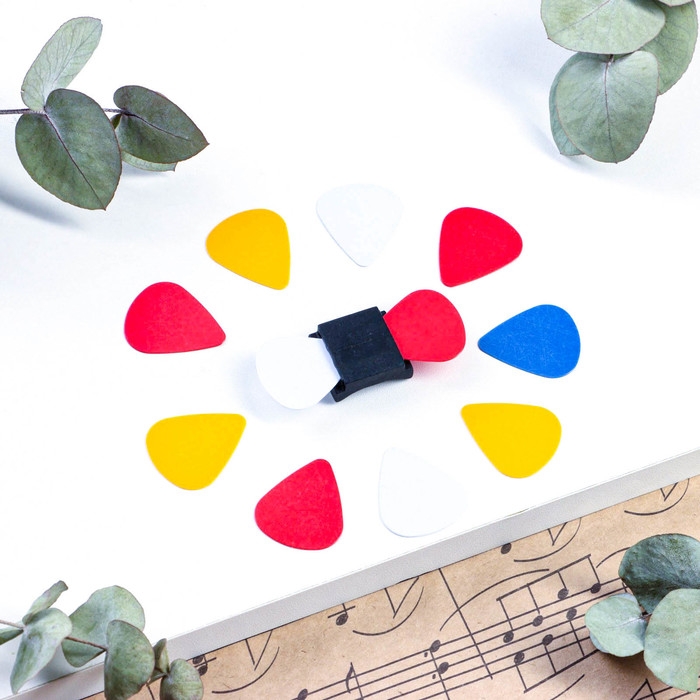 Набор медиаторов: держатель на гриф гитары + 10 медиаторов Music Life, 0,46мм, микс