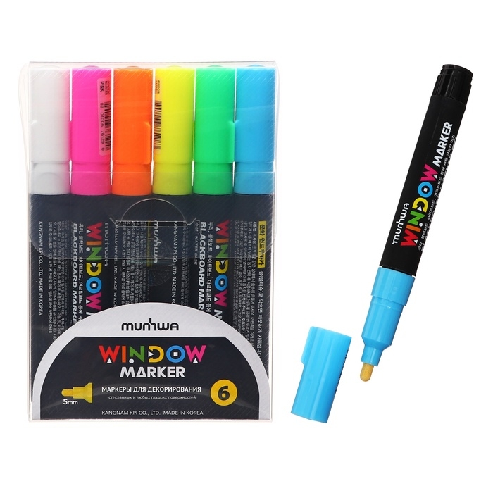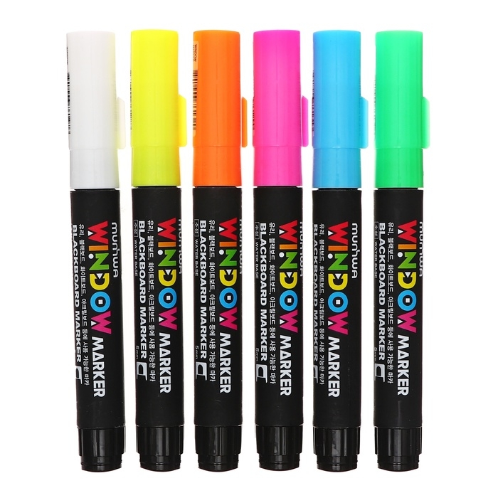 Набор меловых маркеров 6 цветов MunHwa "Window", яркие цвета, для любых поверхностей