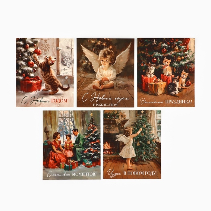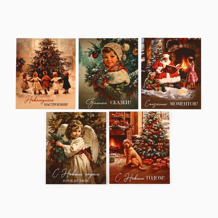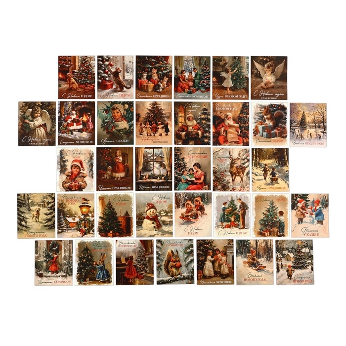 Набор мини-открыток новогодних «С Новым годом!» ретро, 35 штук, 8 x 10 см, Новый год