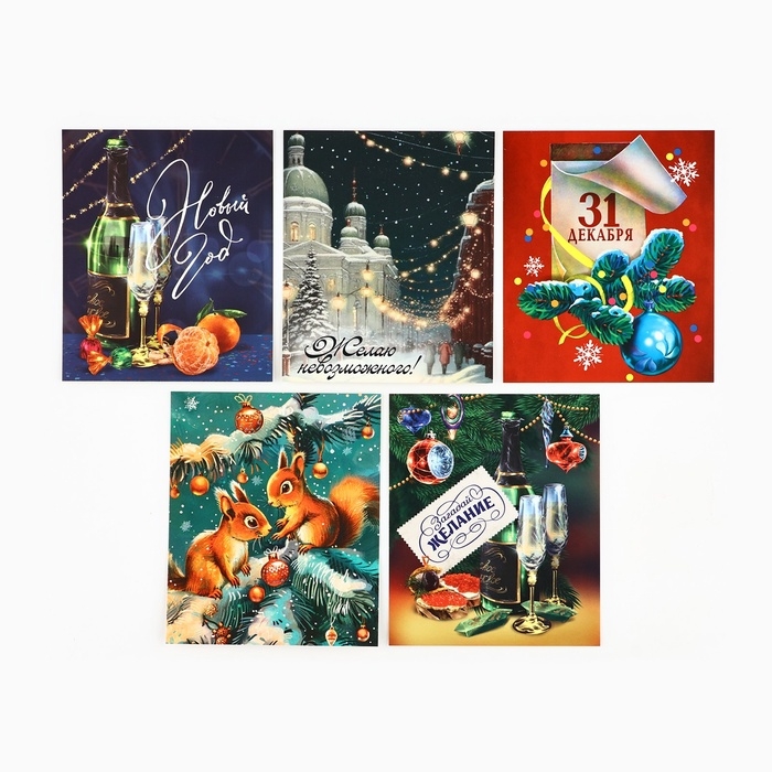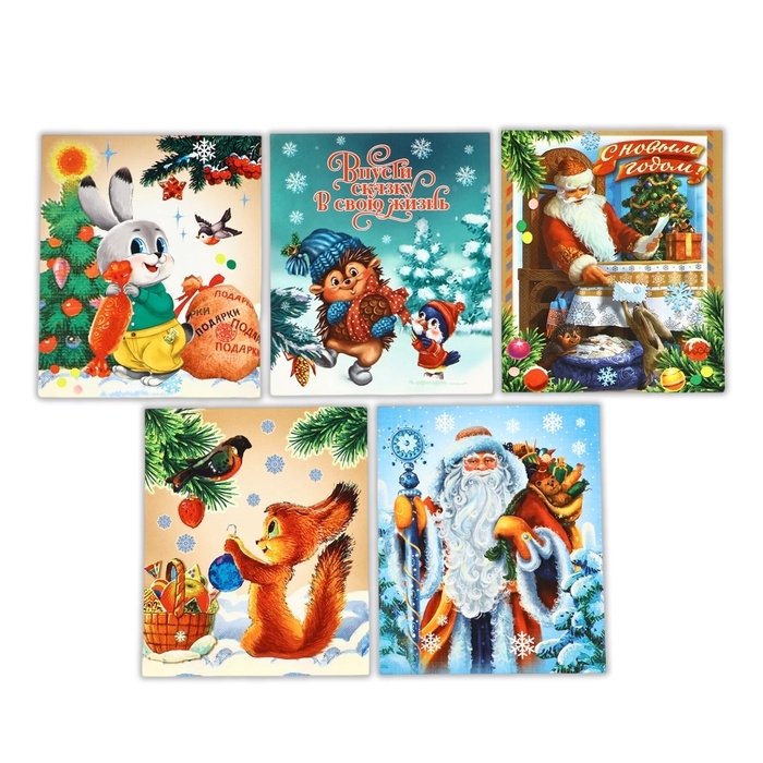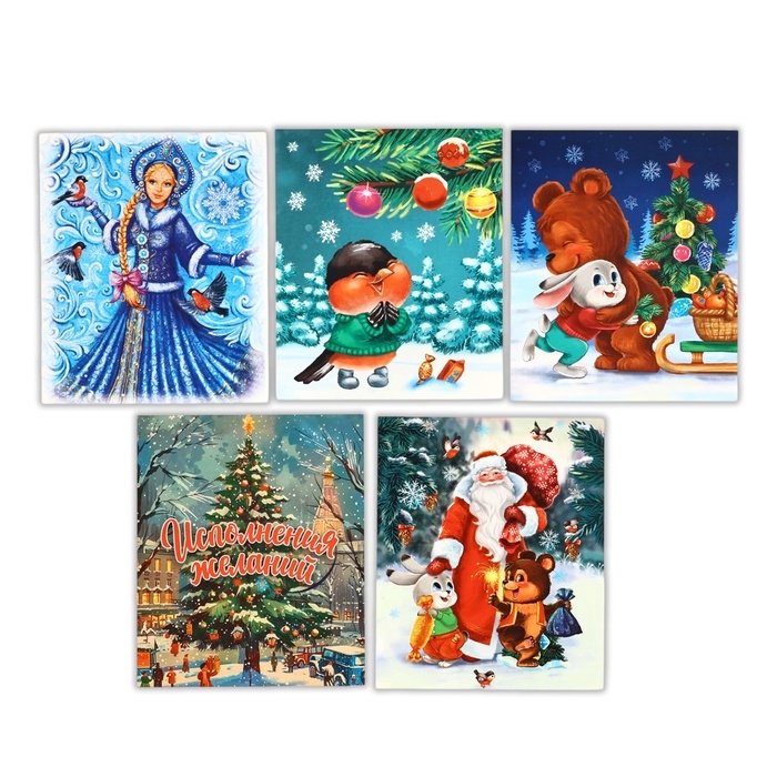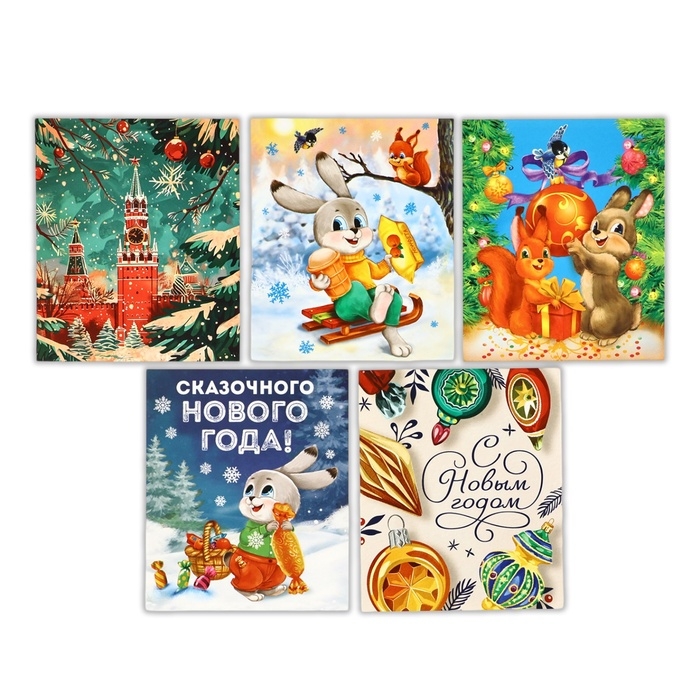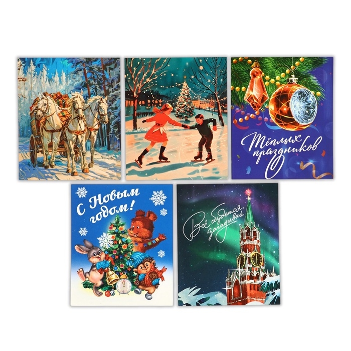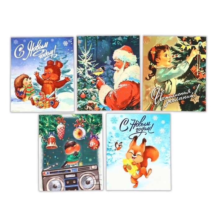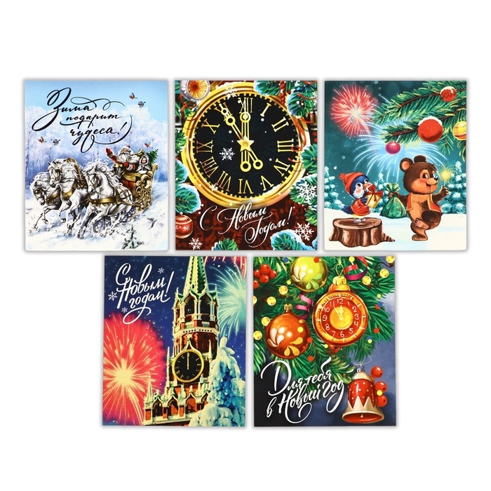 Набор мини-открыток новогодних «С Новым годом!», СССР, 35 штук, 8 x 10 см, Новый год