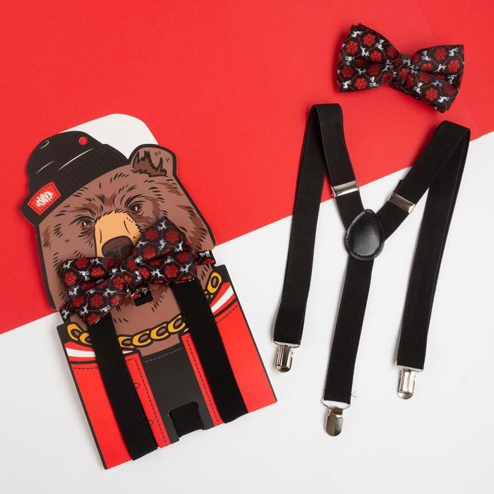 Набор мужской KAFTAN подтяжки и галстук-бабочка "Медведь"