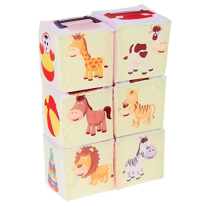 Мягкие кубики «Зверята», 4 шт, 8 х 8 см, по методике Монтессори