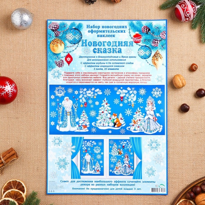 Набор наклеек оформительский "Новогодняя сказка" 2 листа, пластизоль, 49,3х33,6см