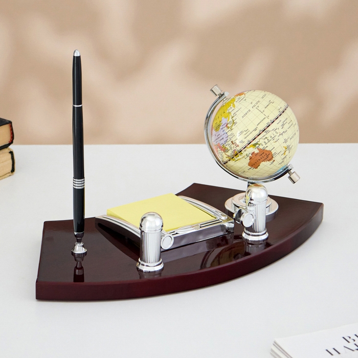 Компактный настольный набор поможет избежать хаоса на рабочем месте. Храните в нём канцелярские принадлежности или другие мелочи, чтобы правильно организовать пространство. К тому же изделие имеет минималистичный дизайн и выполнено под дерево, поэтому оно украсит собой любое место как декоративный элемент.