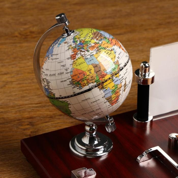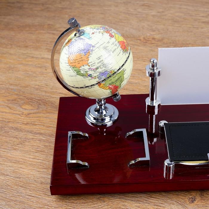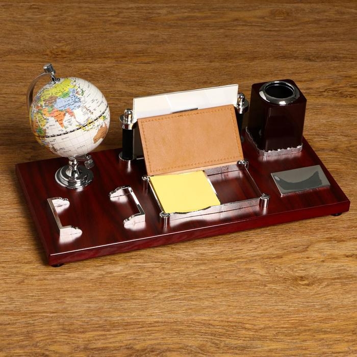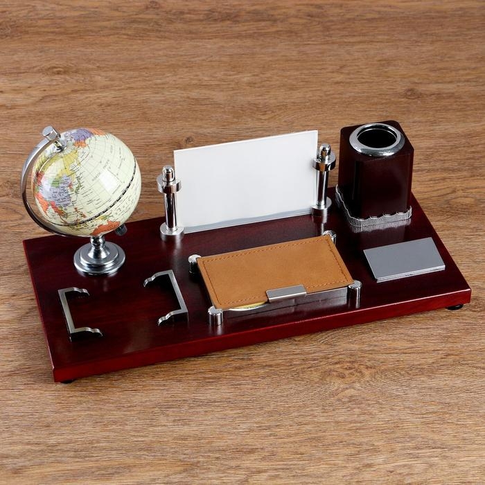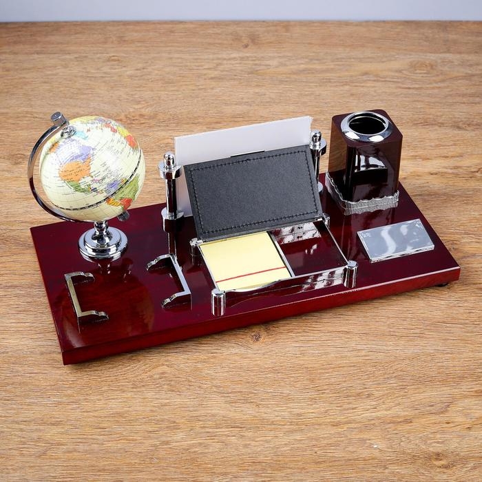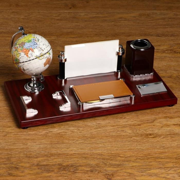 Набор настольный 5в1 (глобус,подст. п/ручки,подст.д/бумаг, фоторамка,скреп) микс