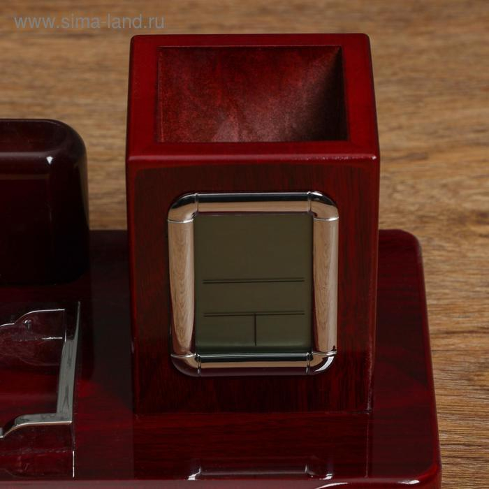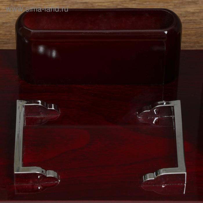 Компактный настольный набор поможет избежать хаоса на рабочем месте. Храните в нём канцелярские принадлежности или другие мелочи, чтобы правильно организовать пространство. К тому же изделие имеет минималистичный дизайн и выполнено под дерево, поэтому оно украсит собой любое место как декоративный элемент.
