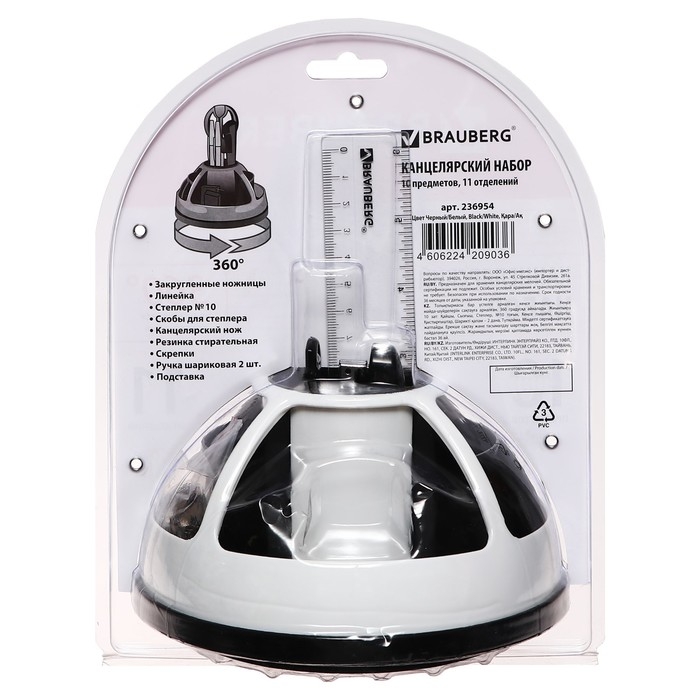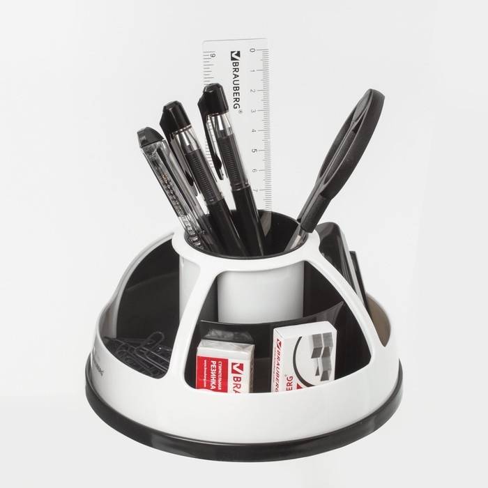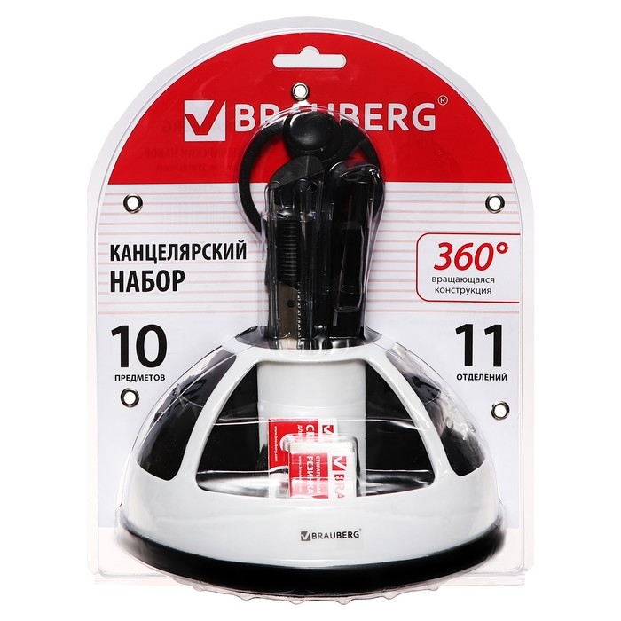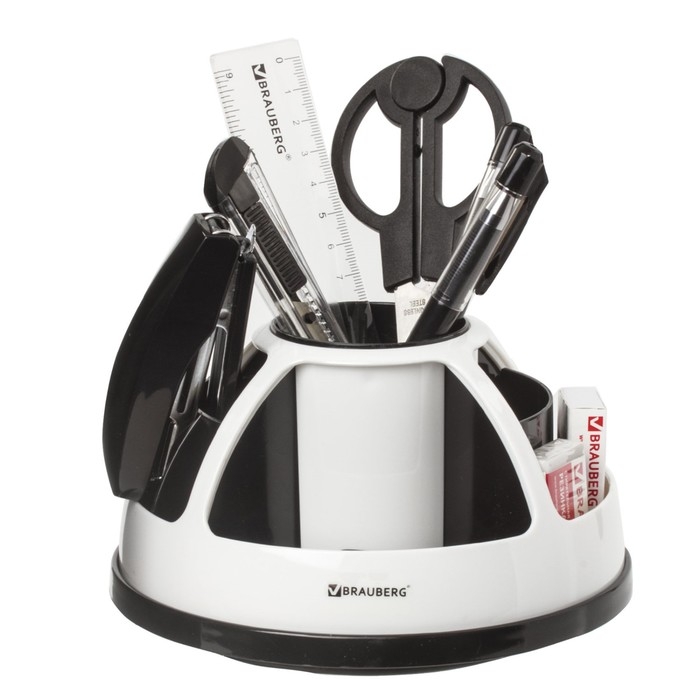 Набор настольный BRAUBERG, 10 предметов, вращающийся, чёрно-белый, в блистере