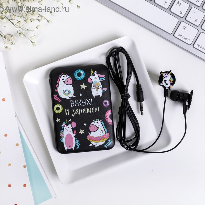 Набор наушники вакуумные и внешний аккумулятор 5000 mAh «Единорог»