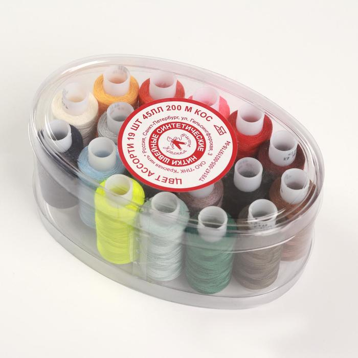 Набор ниток 45ЛЛ, 200 м, 19 шт, цвет разноцветный