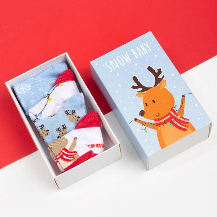 Набор новогодних детских носков Крошка Я «Оленёнок», 4 пары, 10-12 см