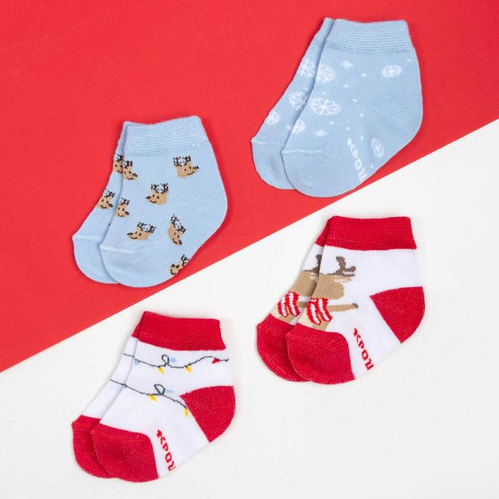 Набор новогодних детских носков Крошка Я «Оленёнок», 4 пары, 8-10 см