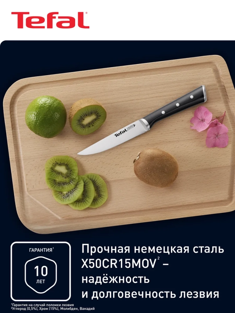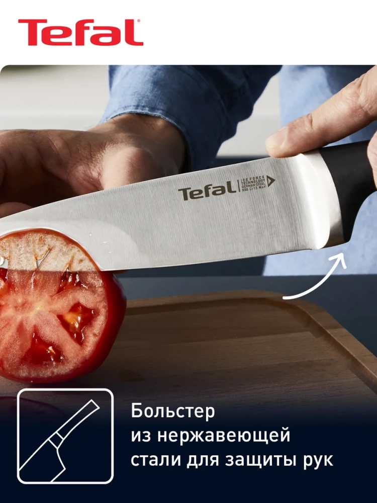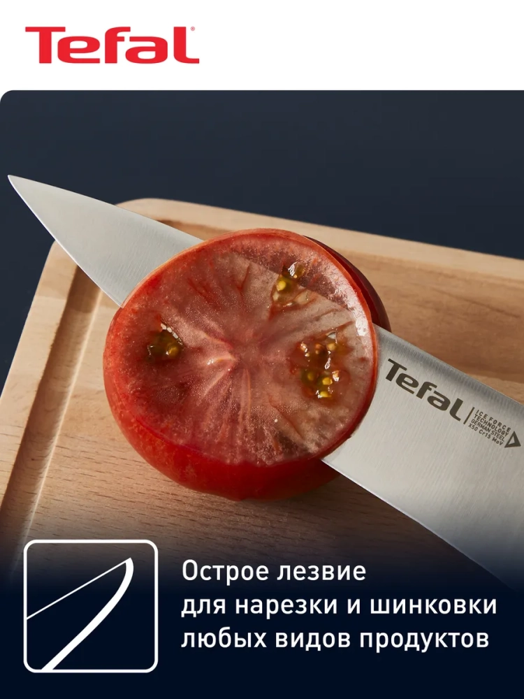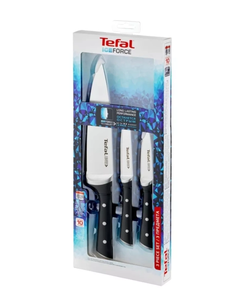 Набор ножей Tefal Ice Force K2323S74. Кухонные ножи Tefal Ice Force: профессиональное качество и долговечность в ваших руках. Очищайте от кожицы и косточек, нарезайте дольками или кубиками или измельчайте по-своему любые продукты от мяса до фруктов и овощей. Набор ножей Ice Force состоит из 3 острых, высококачественных и долговечных ножей, в которых сочетаются инновационные технологии и премиальный дизайн.
