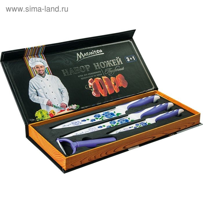 Набор ножей подарочный, 4 предмета в коробке, цвет фиолетовый