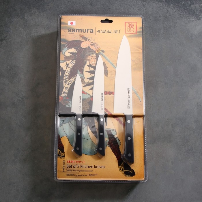 Набор ножей Samura HARAKIRI, 3 шт: лезвие 10 см, 15 см, 20 см, чёрная рукоять