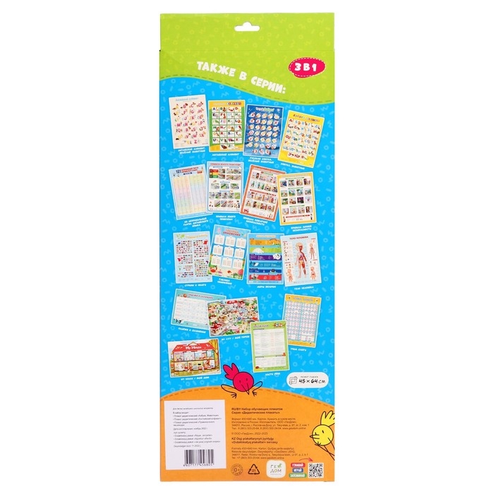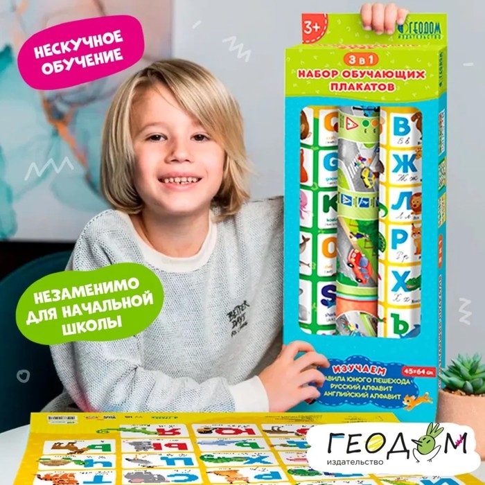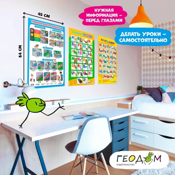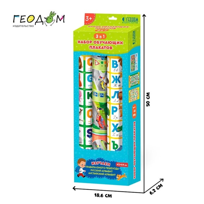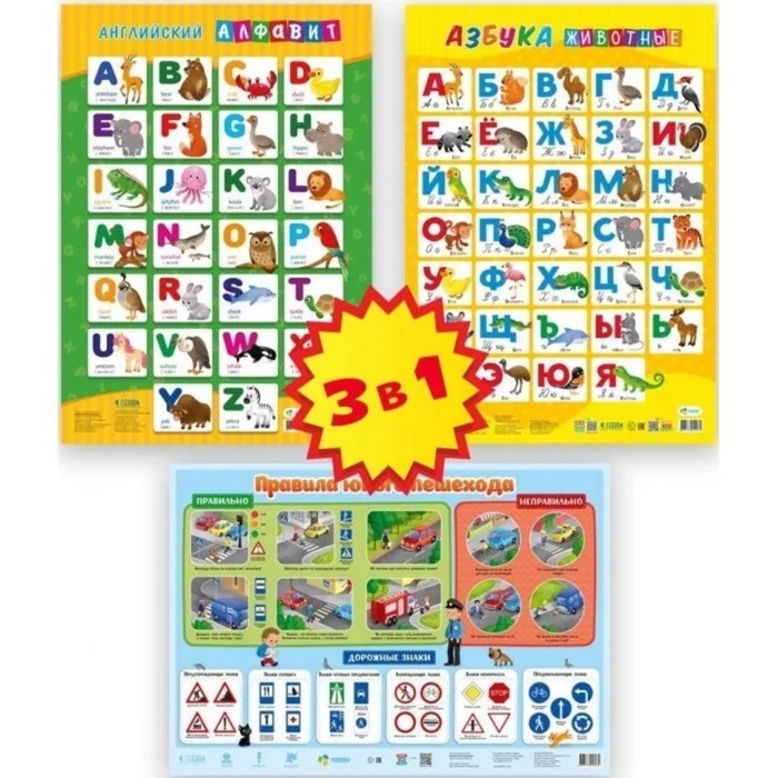 Набор обучающих плакатов «Азбука, английский алфавит, правила юного пешехода», 3 в 1