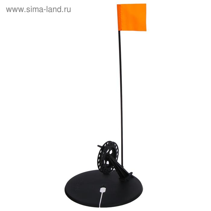 Зимняя жерлица для подлёдной ловли рыбы состоит из основания, стойки с катушкой и флажка-сигнализатора с фиксатором крепления. Большое и прочное основание жерлицы из морозостойкого полипропилена гарантирует затемнение. Усиленная стойка катушки. Винт-барашек позволяет осуществлять регулировку вращения катушки.